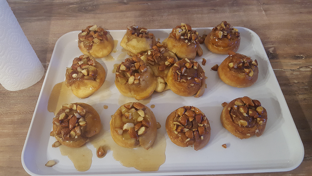 6. Äpfel und Mandel darüber streuenZugedeckt für 40 Minuten an einem warmen Ort gehen lassen